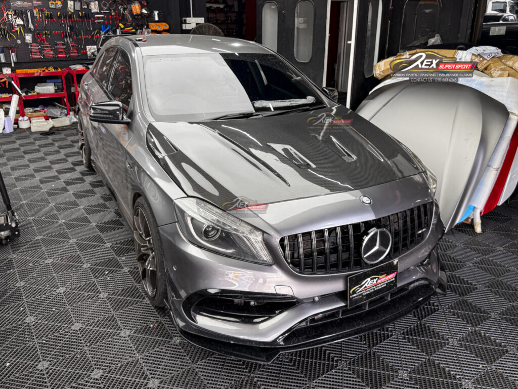 A-Class W176 A180 A200 A250 A45 Front Bonnet Revoz II Carbon